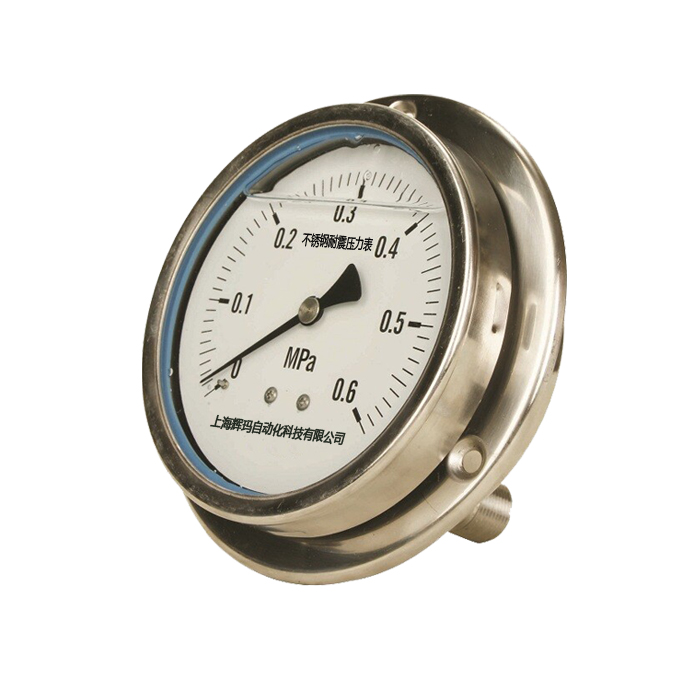 不锈钢耐震压力表的外壳用不锈钢材料制成(简称半钢),可在有腐蚀性、振动较大的恶劣环境中使用。