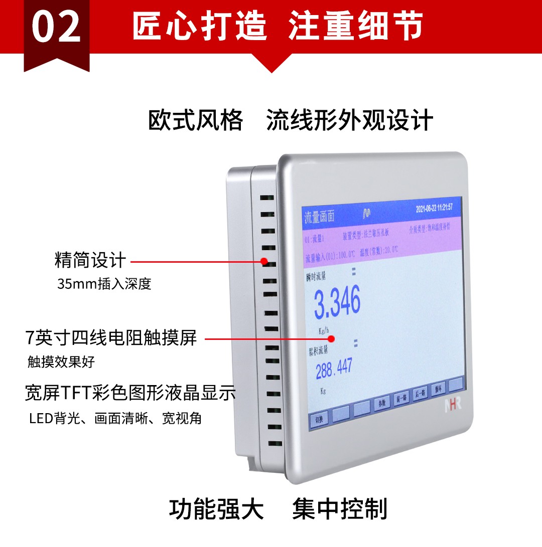 NHR-T960系列超薄大屏流量无纸记录仪采用新型大规模集成电路,对输入、输出、电 源、信号采取可靠保护和强抗干扰设计。